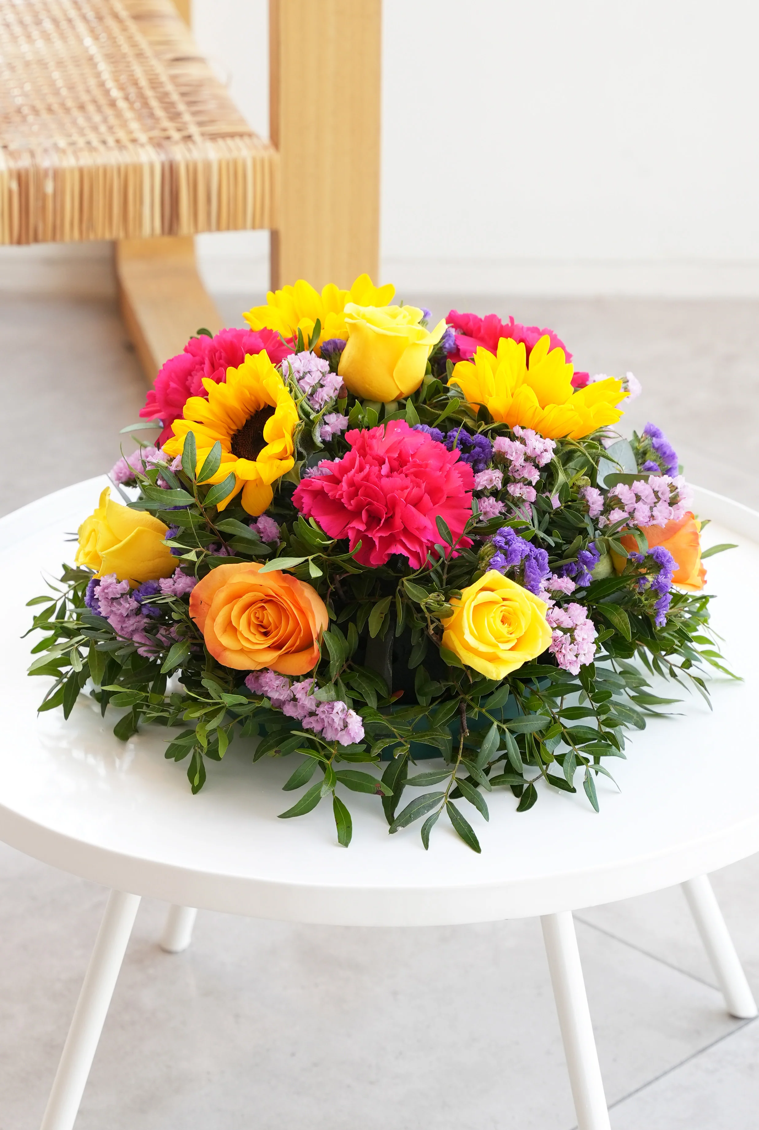 This vivid tribute delivers a burst of colour and warmth, offering a heartfelt and memorable way to honour and celebrate the life of your loved ones.